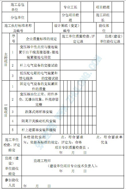 2.1.3 檢驗批的劃分:按主變壓器、箱式變電所各為一個檢驗批。